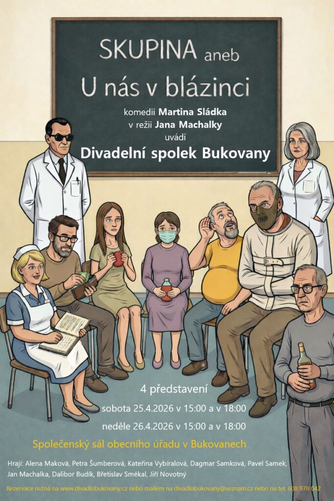 Představení se bude konat ve společenském sále obecního úřadu v Bukovanech, na půdě ve 3 NP. Vzhledem k omezené kapacitě prostor (67 míst) je důležité, abyste si na představení rezervovali svá místa prostřednictvím rezervačního systému REENIO, ať máte jistotu, že si budete mít kam sednout. Vstupné bude jako obvykle dobrovolné a platí se až při vstupu, neplatí se tedy při rezervaci místa.